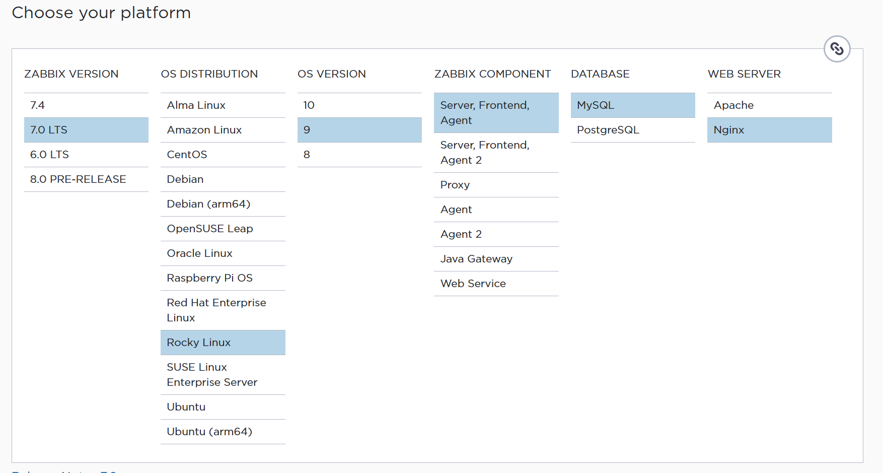 安装zabbix需严格对应自己当前操作系统的版本,这样官方页面给出的rpm包才会正确对应,在后续的安装中才不会出错。