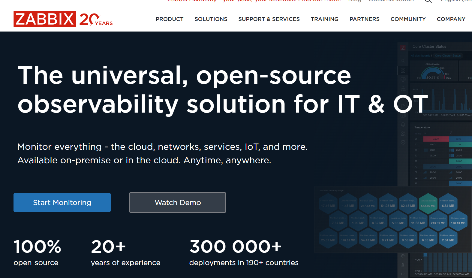 如果从历史上讲,Zabbix 并不是 2005 年才开始,而是更早。官方和公开资料都提到,第一个 Zabbix 版本在 2001 年就已经出现,最初是 Alexei Vladishev 做出来的一个监控工具;2005 年成立 Zabbix 公司,开始把这个项目从“工具”推进成一个长期运营的开源产品和商业支持体系。也就是说,你现在在 2026 年回头看它,它确实已经是一个跨越 20 多年的项目了;如果按公司成立算,2025 年正好是 20 周年。